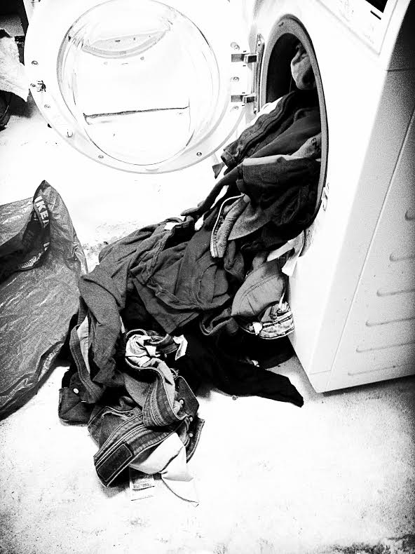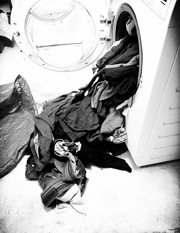 Om det skulle bli glissent i kommentarfeltet, viser heldigvis mitt hverdagsliv å være en utømmelig kilde av bloggmateriell. Ta for eksempel dagens besøk på vaskerommet. Her ser dere mitt mye brukte tørketriks som jeg kaller «hybridmodellen». Her møter altså moderne trommeltørking den mer tradisjonelle snortørkinga. Trikset er rett og slett å la klesvasken tørke på vei ut av vaskemaskinen.