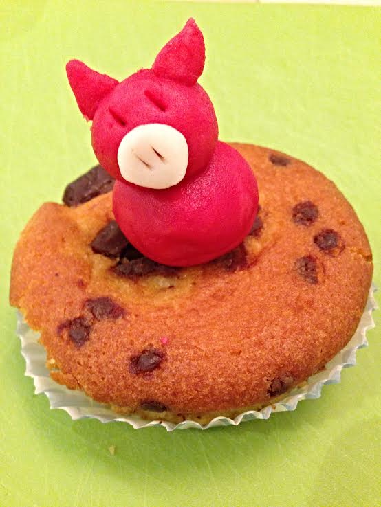 Topp verket med fjoråret julemarsipan for å oppnå et personlig preg. Her med en liten og nett gris på toppen.