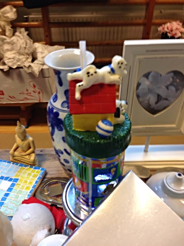 Det er er altså en bolle med nese, hattelokk og et enormt øre som hank. Dette kunstverket har så mange dybder og lag at jeg er målløs. Apropos kunst – det bugnet rett og slett over av uimotståelige gjenstander.